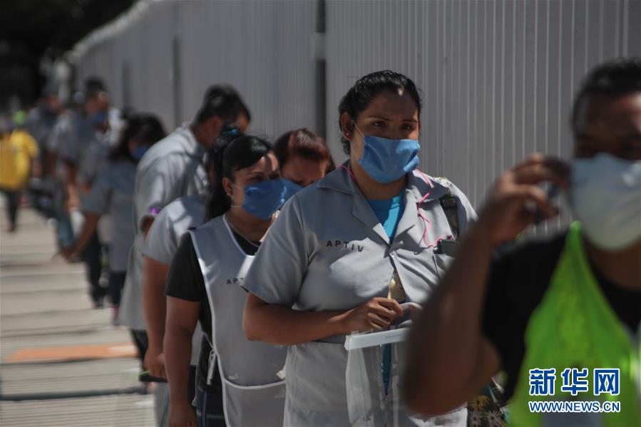 6月3日,工人排队等待进入墨西哥奇瓦瓦州的一家工厂。 墨西哥政府5月13日宣布“新常态计划”,从5月18日起,在确保安全的前提下,分三阶段陆续开展各领域复工复产。 新华社发(戴维·佩纳多 摄)