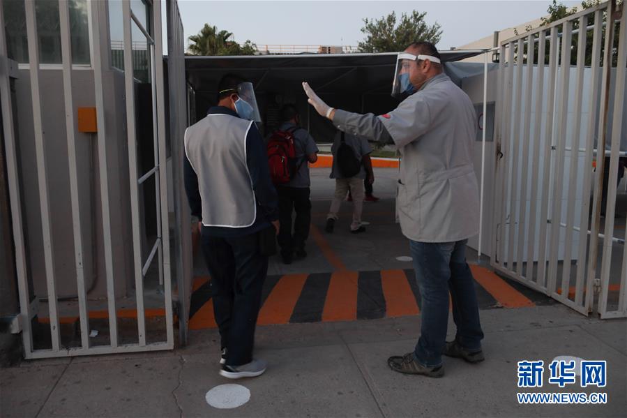 6月3日,工作人员引导工人进入墨西哥奇瓦瓦州的一家工厂。 墨西哥政府5月13日宣布“新常态计划”,从5月18日起,在确保安全的前提下,分三阶段陆续开展各领域复工复产。 新华社发(戴维·佩纳多 摄)