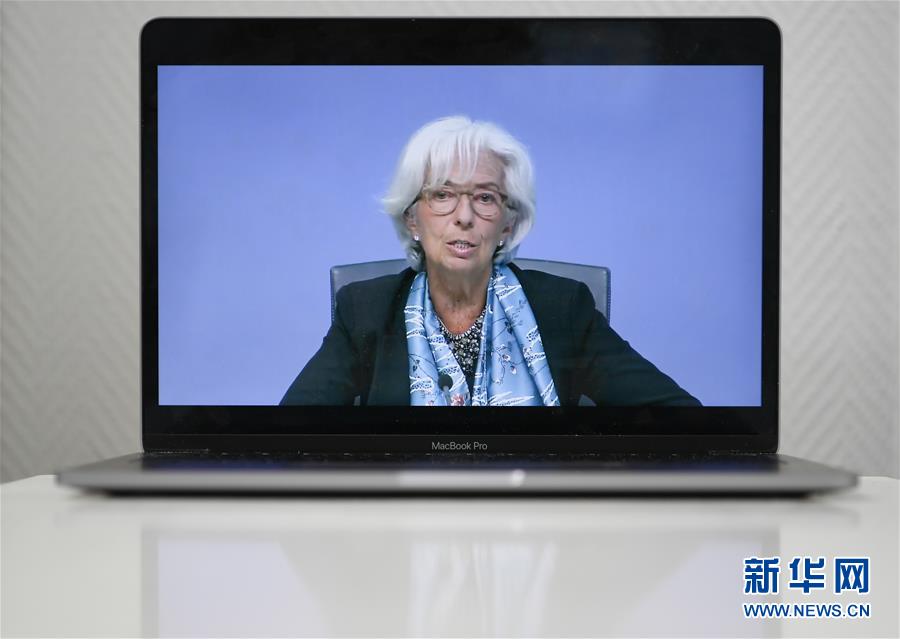 6月4日,在德国法兰克福举行的欧洲中央银行货币政策会议后,欧洲央行行长拉加德(左)出席新闻发布会(视频画面)。 新华社记者 逯阳 摄