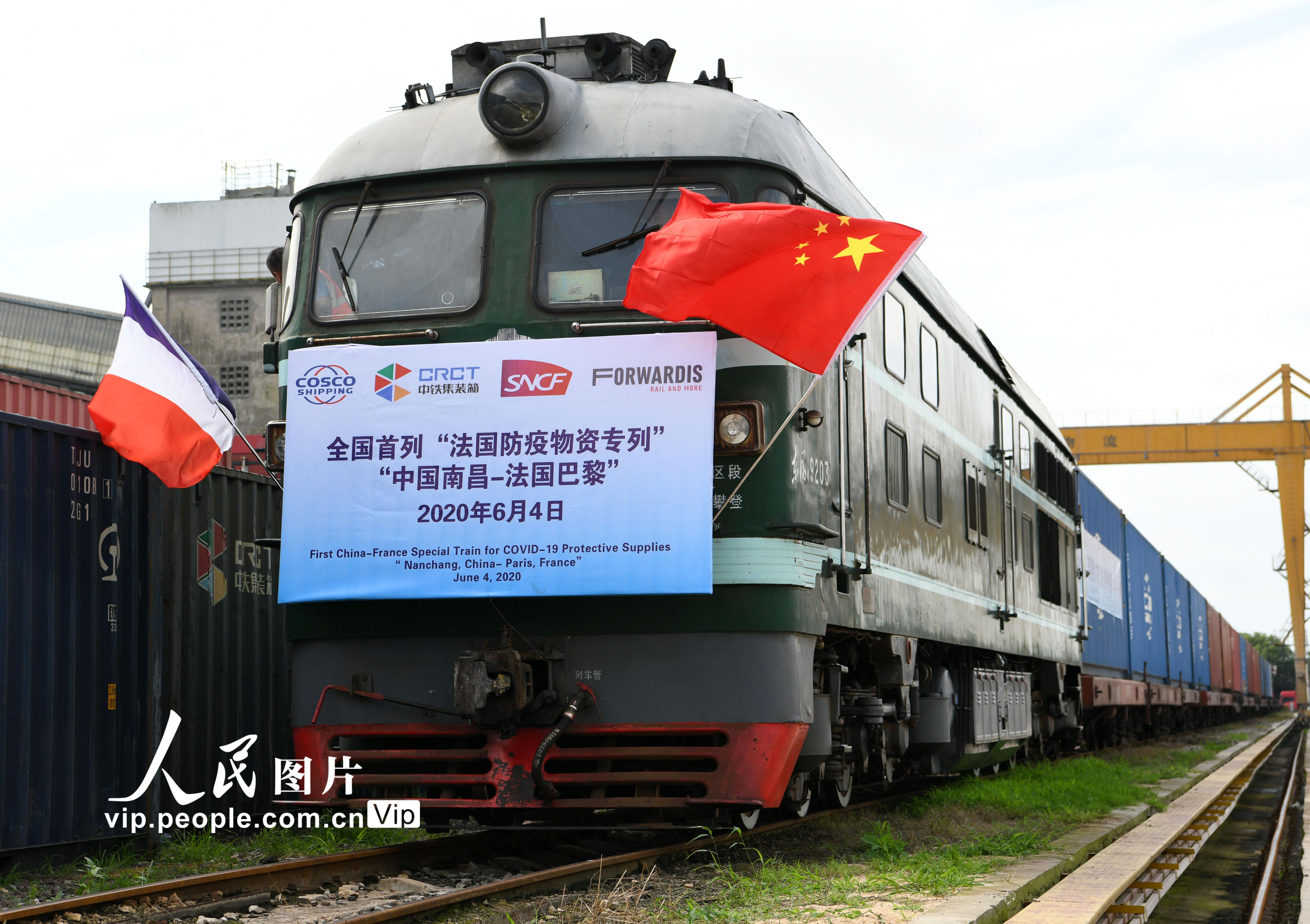2020年6月4日上午,全国首趟开往法国巴黎的防疫物资专列由南昌(向塘)国际陆港横岗站出发,此趟专列共计装载2000万个口罩,4500万副手套,130万只水溶袋以及免触碰消毒液机等产品,总金额达1000万欧元。