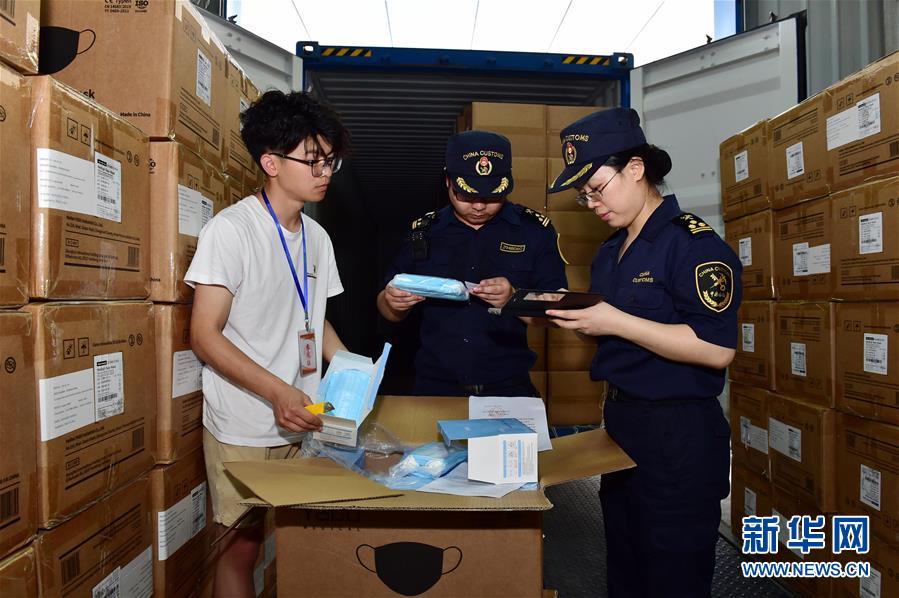 6月5日,浙江义乌海关工作人员在对出口欧洲的防疫物资进行查验。新华社发(吕斌 摄)