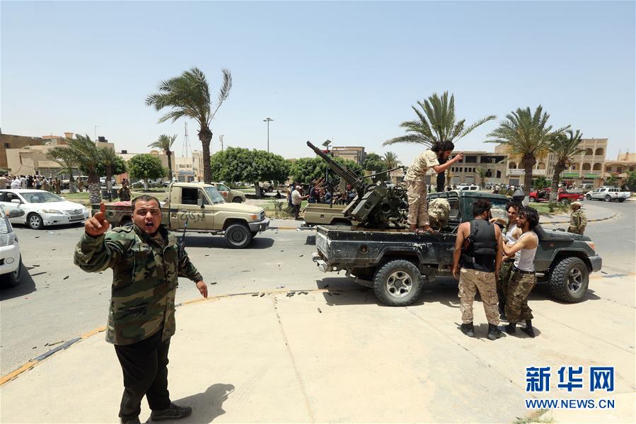 6月5日,利比亚民族团结政府军在塔鲁纳市庆祝胜利。 新华社发(哈姆扎·图尔基亚摄)