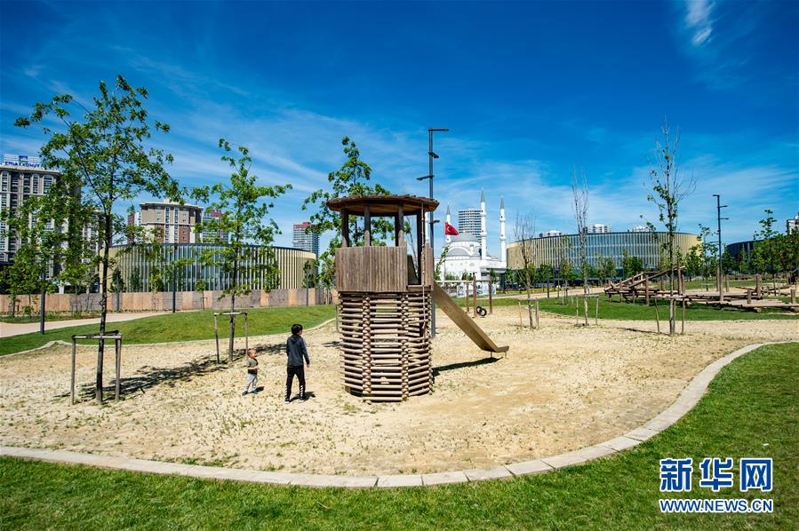 6月5日,孩子们在土耳其伊斯坦布尔新开放的公园内游玩。 为庆祝6月5日的世界环境日,土耳其当日在全国开放了10个大型公园。 新华社发(亚辛·阿克居尔摄)