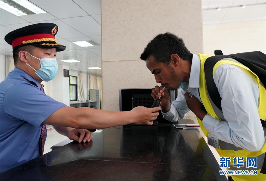 6月5日,特瑞萨在出勤前进行酒精测试。 新华社记者 李安 摄