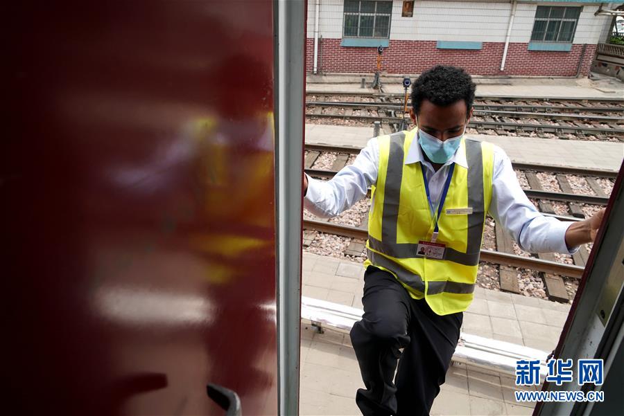 6月5日,特瑞萨在郑州机务段内登上机车。 新华社记者 李安 摄