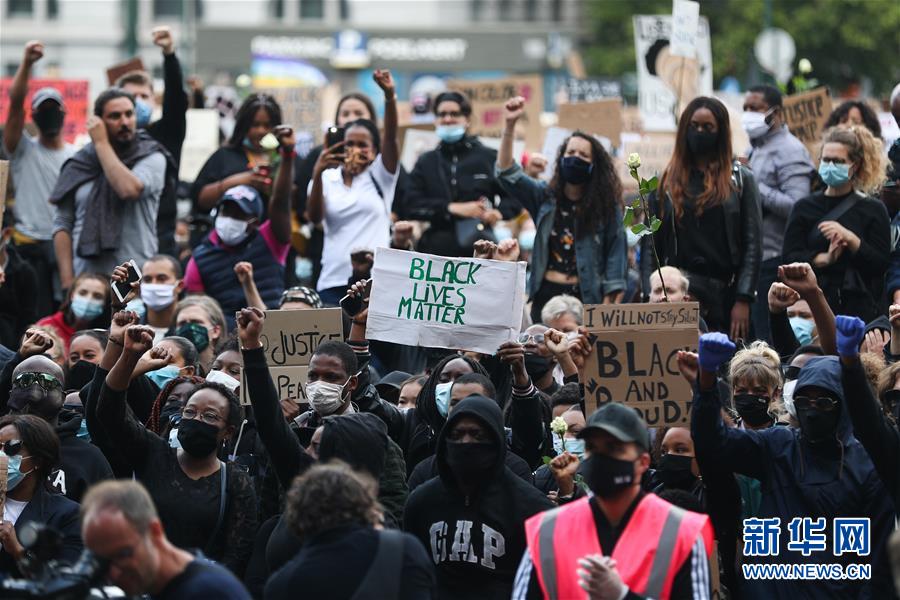 比利时举行示威活动抗议美国警察暴力执法和种族主义