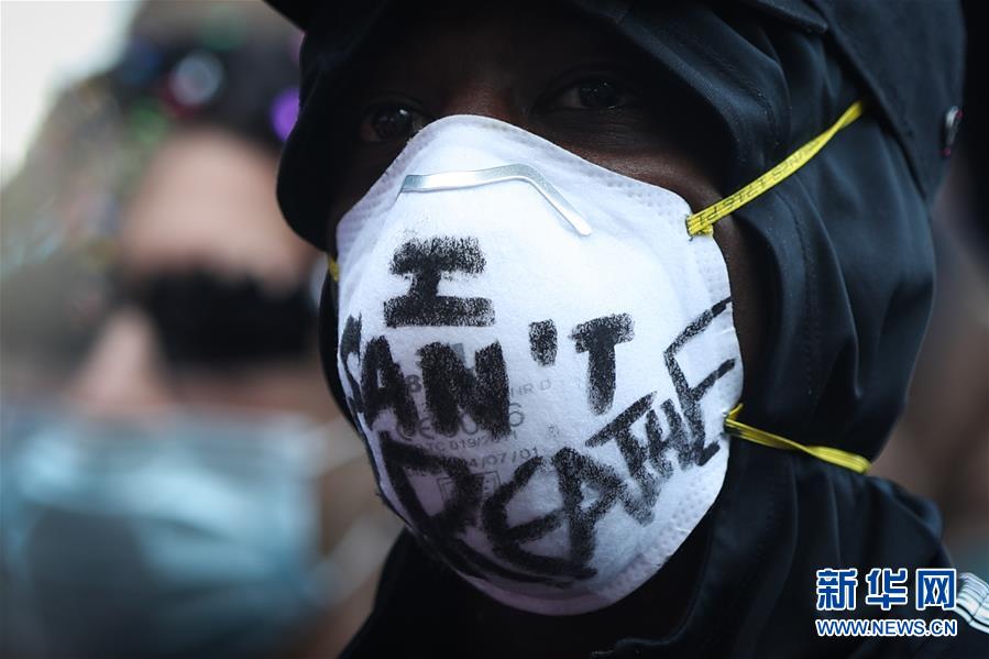 6月7日,民众在比利时布鲁塞尔市中心的司法宫附近参加示威活动。 比利时民众当日在布鲁塞尔市中心的司法宫附近举行示威活动,抗议美国明尼阿波利斯市警察暴力执法致非裔男子乔治·弗洛伊德死亡。 新华社记者 郑焕松 摄
