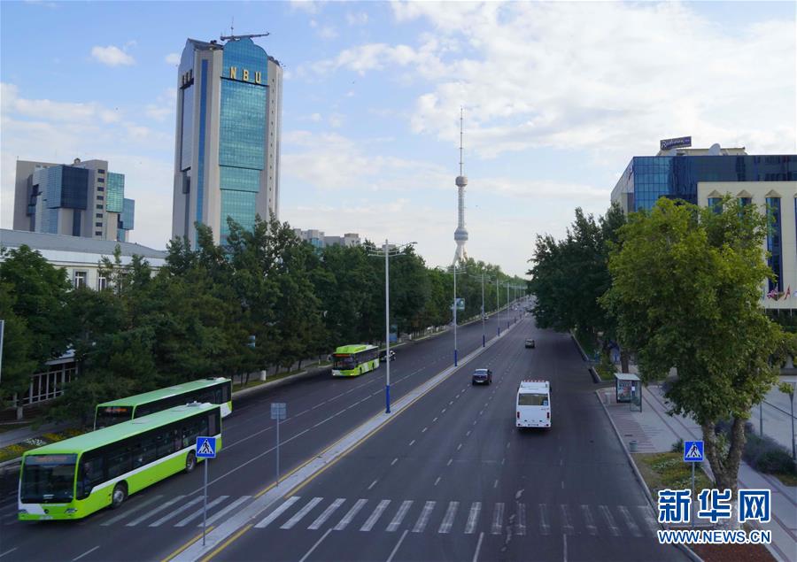 这是6月8日在乌兹别克斯坦首都塔什干的街道上拍摄的恢复运行的公交车。 乌兹别克斯坦疫情防控特别委员会6月5日决定,自6月8日起,在严格遵守防疫规定的前提下,该国疫情低风险区域将允许城市公交车运行。 新华社发(扎法尔摄)