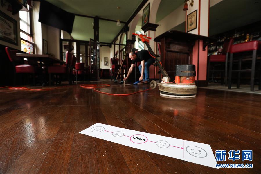 6月8日,工作人员为比利时布鲁塞尔一家酒吧重新营业做准备。 新华社记者 郑焕松 摄
