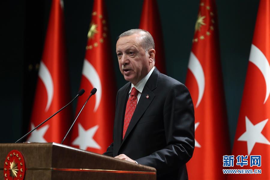 6月9日,土耳其总统埃尔多安在安卡拉举行的新闻发布会上讲话。新华社发(穆斯塔法·卡亚摄)