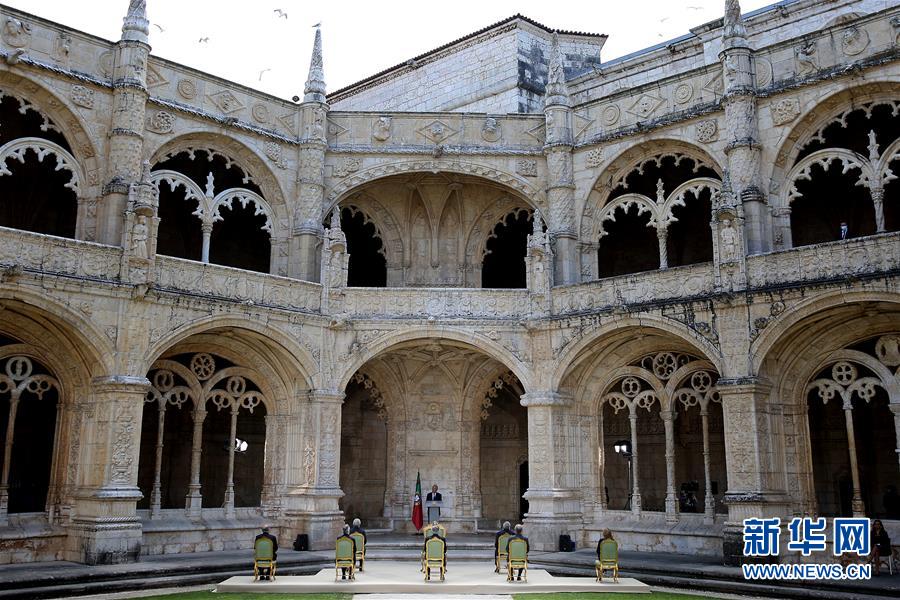 6月10日,葡萄牙总统德索萨在里斯本的庆祝活动现场发表讲话。 当日,葡萄牙举行国庆日庆祝活动。 新华社发(佩德罗·菲乌萨 摄)