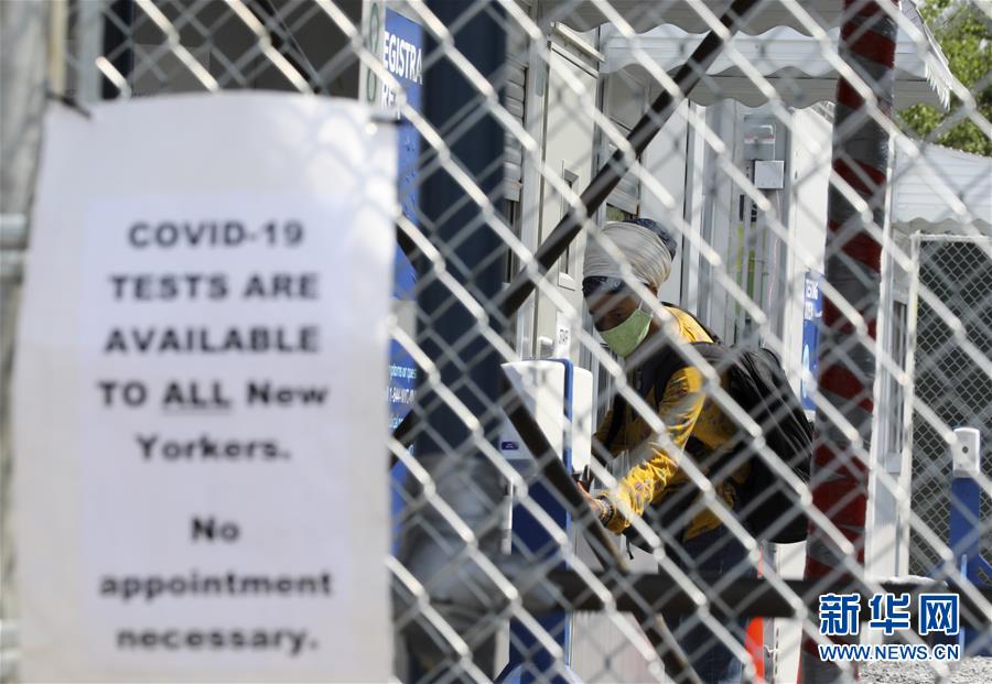 6月10日,一名女子在美国纽约一处新冠检测点接受检测。 美国约翰斯·霍普金斯大学10日发布的新冠疫情最新统计数据显示,美国累计确诊病例超过200万例。 新华社记者 王迎 摄