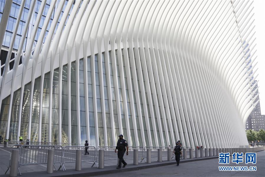 6月10日,警察在美国纽约世贸中心车站外戴着口罩巡逻。 美国约翰斯·霍普金斯大学10日发布的新冠疫情最新统计数据显示,美国累计确诊病例超过200万例。 新华社记者 王迎 摄