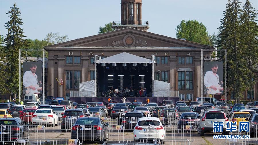 这是6月11日在拉脱维亚里加举办的“汽车音乐节”现场。 由于新冠疫情的影响,一场特殊的“汽车音乐节”在拉脱维亚里加举办。人们在汽车上通过特定的频率收听乐队的演奏,以安全的方式享受音乐。 新华社发(亚尼斯摄)