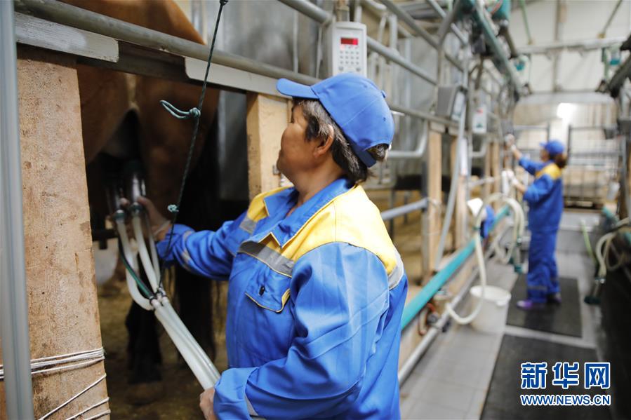 6月11日,哈萨克斯坦卡拉干达州一家乳品厂的工作人员收集马奶。新华社发(奥斯潘诺夫摄)