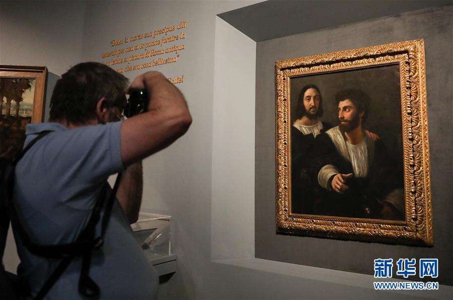 7月2日,在意大利首都罗马奎里纳莱博物馆,一名男子在拉斐尔纪念展上拍照。 新华社记者 程婷婷 摄