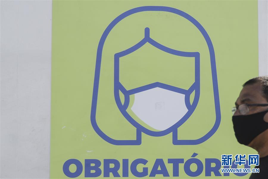 7月2日,在巴西圣保罗州首府圣保罗市,行人经过一处提醒民众佩戴口罩的广告。新华社发(拉赫尔·帕特拉索摄)