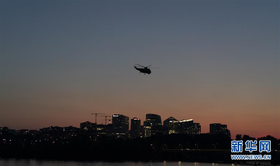 7月2日,一架直升机从美国华盛顿的波托马克河上空飞过。新华社记者 刘杰 摄