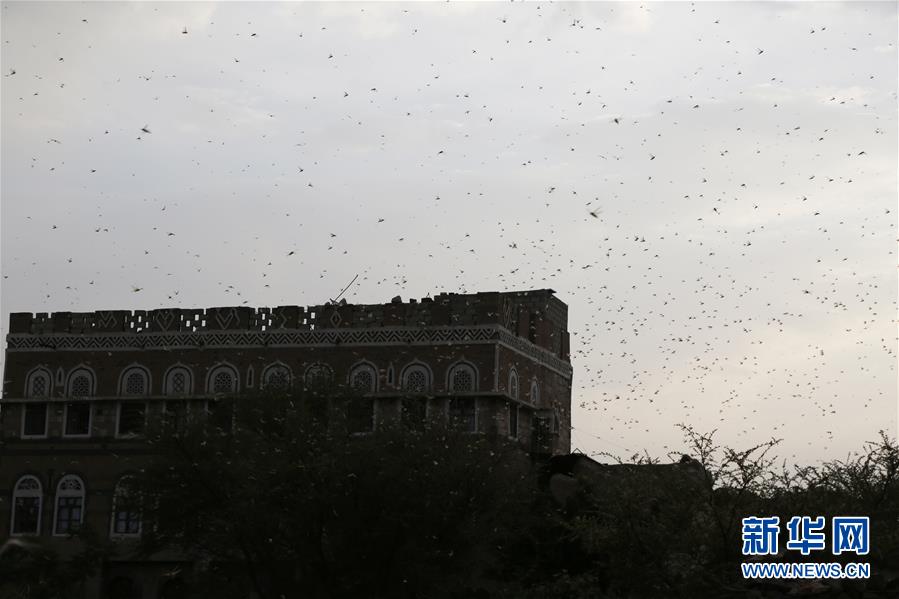 7月3日,蝗虫在也门首都萨那天空飞舞。 也门首都萨那近日再次遭遇蝗虫入侵,遮天蔽日的蝗虫啃食农作物,给当地农业带来巨大损失。 新华社发(穆罕默德摄)