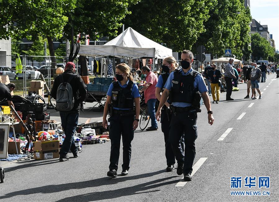 7月4日,警方在德国法兰克福的“跳蚤市场”内执勤。新华社记者 逯阳 摄