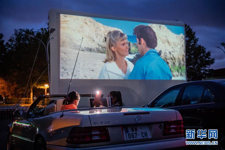 7月4日,观众在法国巴黎近郊圣蒂博得维涅的汽车电影院观影。 新冠肺炎疫情期间,露天汽车电影院备受人们欢迎。 新华社发(奥雷利安·莫里萨尔摄)