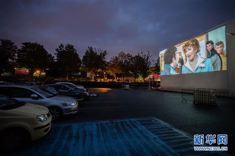 这是7月4日在法国巴黎近郊圣蒂博得维涅拍摄的汽车电影院。 新冠肺炎疫情期间,露天汽车电影院备受人们欢迎。 新华社发(奥雷利安·莫里萨尔摄)