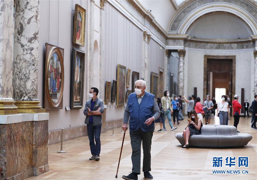 7月6日,人们在法国巴黎卢浮宫博物馆参观。 因新冠病毒疫情关闭3个多月后,法国卢浮宫博物馆于6日重新开放。 新华社记者 高静 摄