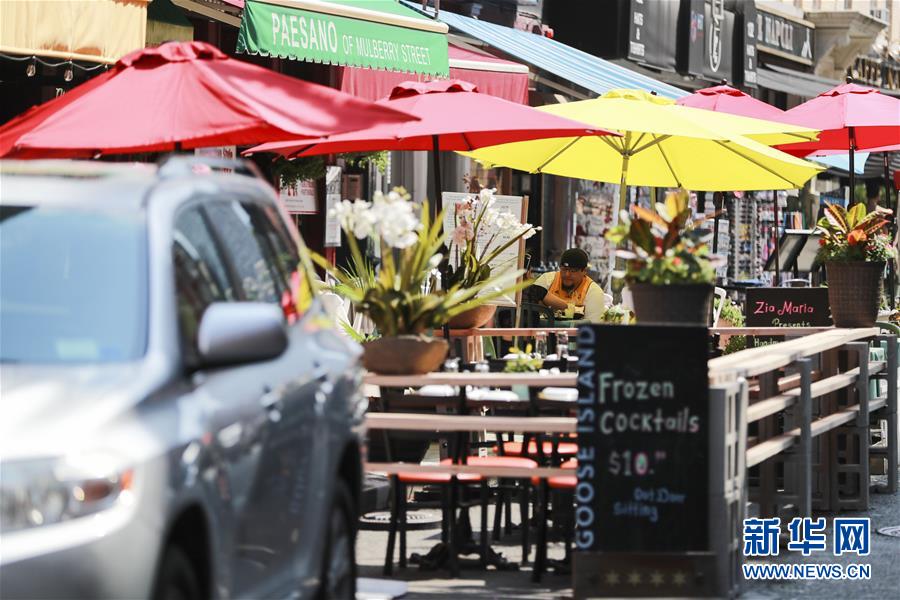 7月6日,顾客在美国纽约一家餐厅的户外餐区就餐。 当天,纽约进入重启第三阶段,美甲店、按摩店等个人护理业在经历近4个月的停业后被允许重新开放。因防疫需要,原本应在第三阶段开放的餐饮业室内就餐仍处于暂停状态。 新华社记者 王迎 摄