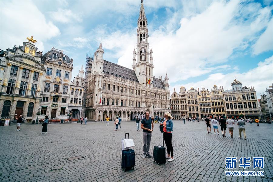 6月28日,游客在比利时布鲁塞尔大广场游玩。