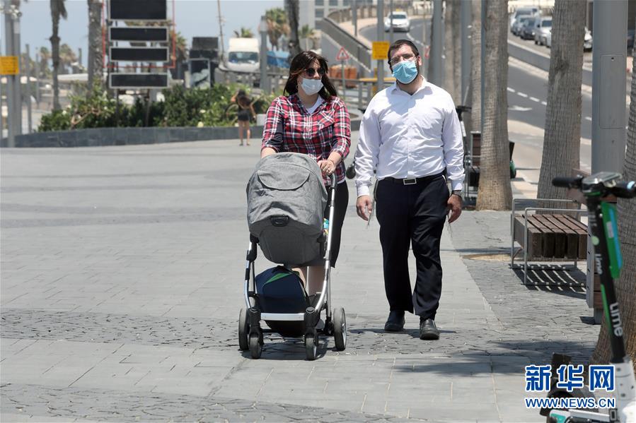 7月7日,戴口罩的行人走在以色列中部城市特拉维夫的道路上。 新华社/基尼图片社