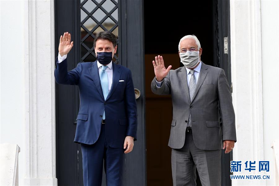 7月7日,在葡萄牙首都里斯本,葡萄牙总理科斯塔(右)与到访的意大利总理孔特在会谈前合影。 葡萄牙总理科斯塔7日与到访的意大利总理孔特一致表示,欧盟当天发布的最新经济预测表明,新冠疫情给欧盟造成的经济冲击远超预期,各成员国应迅速采取行动,就经济恢复方案尽快达成一致。 新华社发(佩德罗·菲乌萨摄)