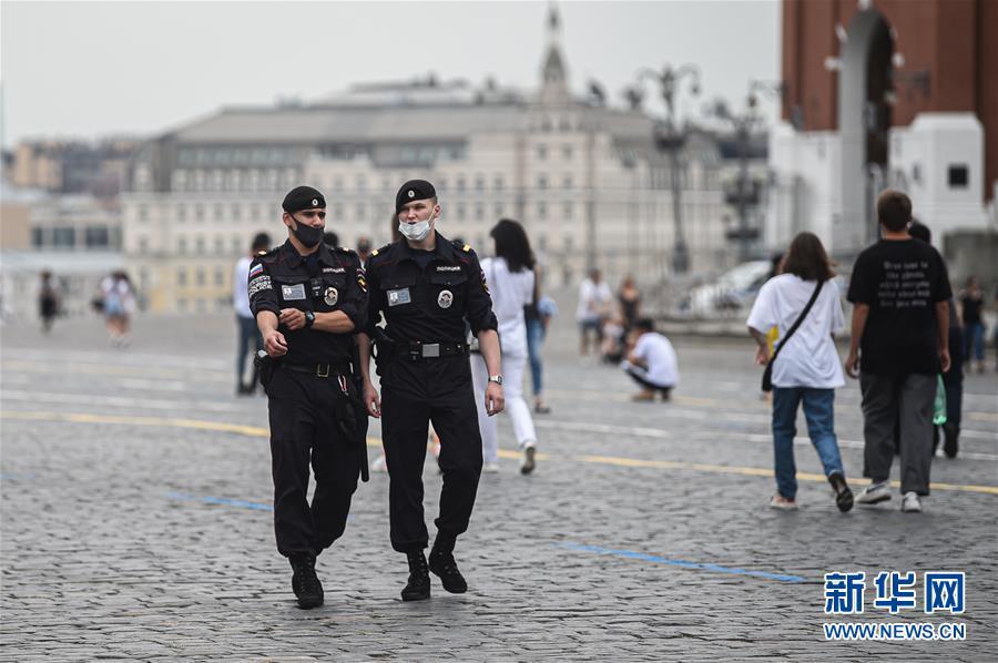 7月8日,在俄罗斯首都莫斯科,警察在红场巡逻。
