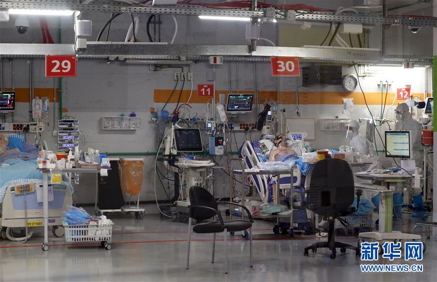 7月8日,医护人员在以色列拉马特甘的谢巴医疗中心新冠隔离病房工作。新华社发(吉尔·科恩·马根摄)