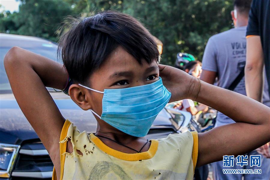 7月9日,一名儿童在菲律宾马尼拉佩戴口罩。新华社发(乌马利摄)