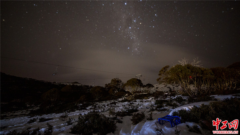 当地时间2020年7月10日,澳大利亚夏洛特山口,当地一滑雪场附近晴朗的夜空中出现银河。Bill Blair/视觉中国