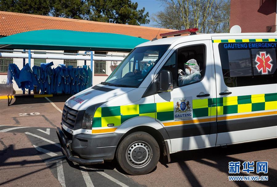 7月10日,在南非比勒陀利亚,救护车准备出发收治新冠患者。 根据7月9日的统计数据,南非新增新冠确诊病例13674例,累计238339例。 新华社发(耶希尔摄)