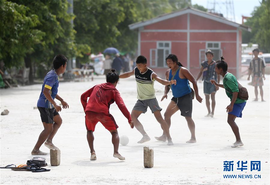7月10日,市民在缅甸仰光街头踢球。 近日,缅甸新冠疫情趋于稳定,受疫情影响严重的仰光已开始恢复往日生气。 新华社发(吴昂摄)