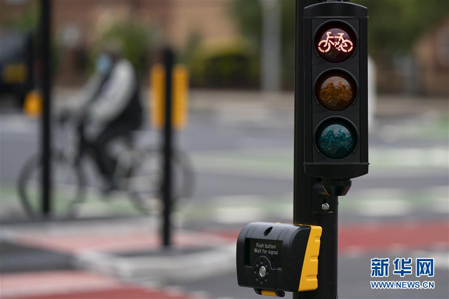 这是7月9日在英国曼彻斯特拍摄的自行车专用信号灯。新华社发(乔恩·休珀摄)