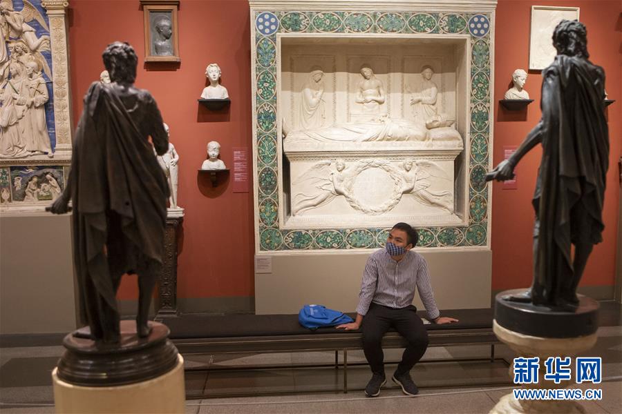 7月10日,一名男子在俄罗斯首都莫斯科的普希金造型艺术博物馆内参观。新华社发(亚历山大摄)