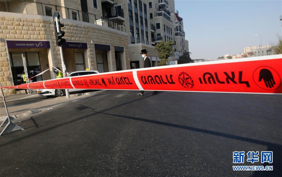 这是7月10日在耶路撒冷一处被封锁的社区拍摄的警方封锁标识。新华社发(吉尔·科恩·马根摄)