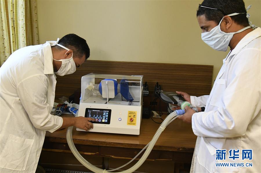 7月12日,工人们在叙利亚大马士革生产制作口罩的原材料。 新华社发(阿马尔·萨法尔贾拉尼摄)