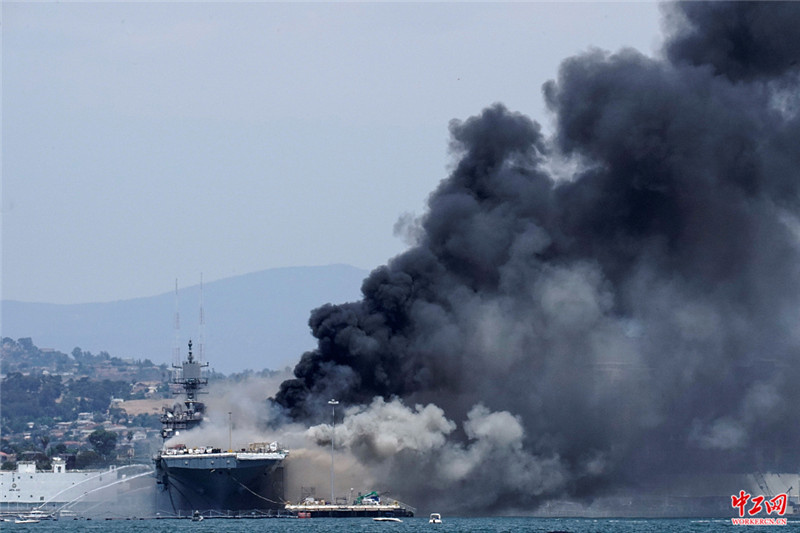 美军一两栖攻击舰爆炸起火 造成至少21人受伤