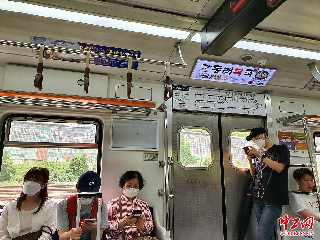 当地时间2020年7月14日,韩国首尔,九老地铁站比较冷清,坐地铁的人也不多。在首尔,政府部门上班的时间是上午9点半,其他行业上班时间是上午10点,所以,不存在午间出行高峰。再加上韩国目前仍处在防疫阶段,非高峰期地铁冷清也就很正常了。孙成武/视觉中国