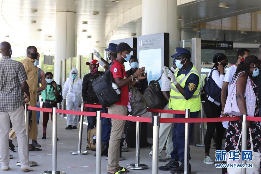 7月13日,在位于肯尼亚蒙巴萨的蒙内铁路蒙巴萨站,乘客排队进站。 因新冠疫情停运97天的肯尼亚蒙内铁路客运列车13日恢复运行。 新华社发(冯东 摄)