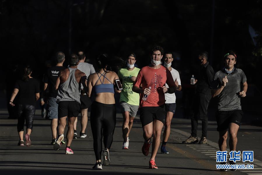 7月13日,人们在巴西圣保罗市重新开放的伊比拉普埃拉公园内锻炼。 新华社发(拉赫尔·帕特拉索摄)