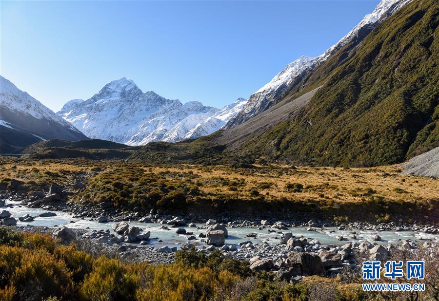 这是7月13日拍摄的新西兰库克山国家公园地貌。 位于新西兰南岛南阿尔卑斯山脉的库克山国家公园由19座海拔超过3000米的高峰、庞大的塔斯曼冰川和众多冰川消融湖泊组成,其中海拔超过3700米的库克山是新西兰最高峰。 新华社记者 郭磊 摄