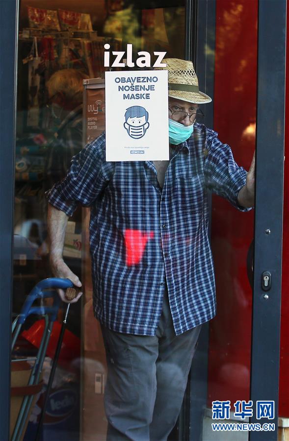 7月13日,一名男子戴着口罩在克罗地亚希贝尼克一家商店购物。 克罗地亚规定,从13日起进入医院、商店等室内场所的人必须戴口罩。 新华社发(杜什科·亚拉马兹摄)