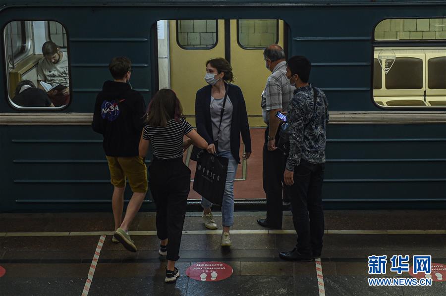 7月13日,人们在俄罗斯莫斯科一个地铁站乘车。 据俄防疫指挥部14日消息,俄罗斯过去24小时新增新冠确诊病例6248例,累计确诊739947例;新增死亡病例175例,累计死亡11614例。 新华社发(叶甫盖尼·西尼岑摄)
