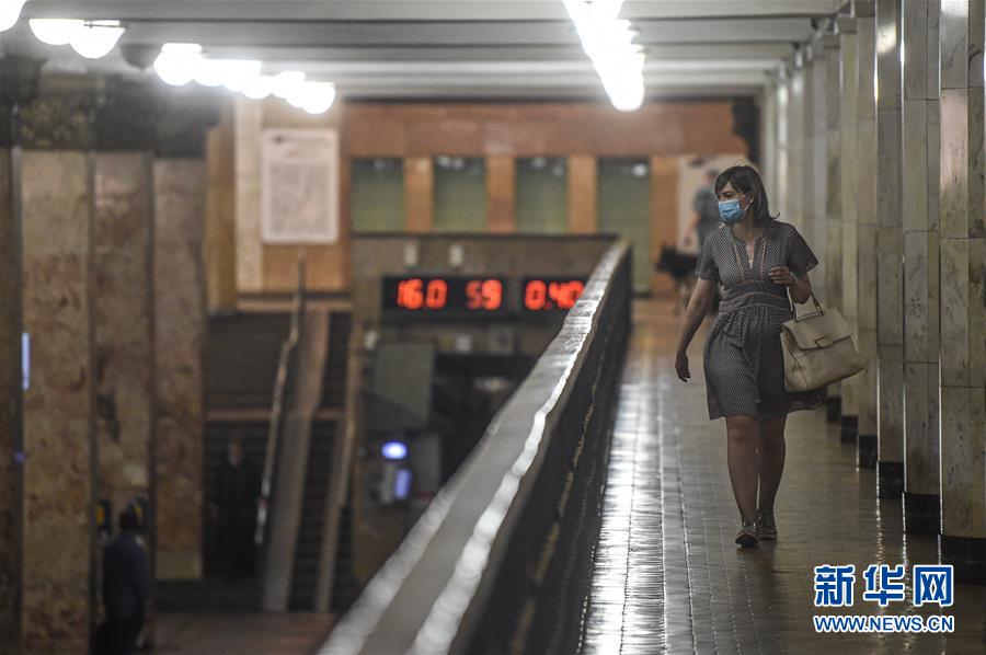 7月13日,戴口罩的女子走在俄罗斯莫斯科一个地铁站内。 据俄防疫指挥部14日消息,俄罗斯过去24小时新增新冠确诊病例6248例,累计确诊739947例;新增死亡病例175例,累计死亡11614例。 新华社发(叶甫盖尼·西尼岑摄)