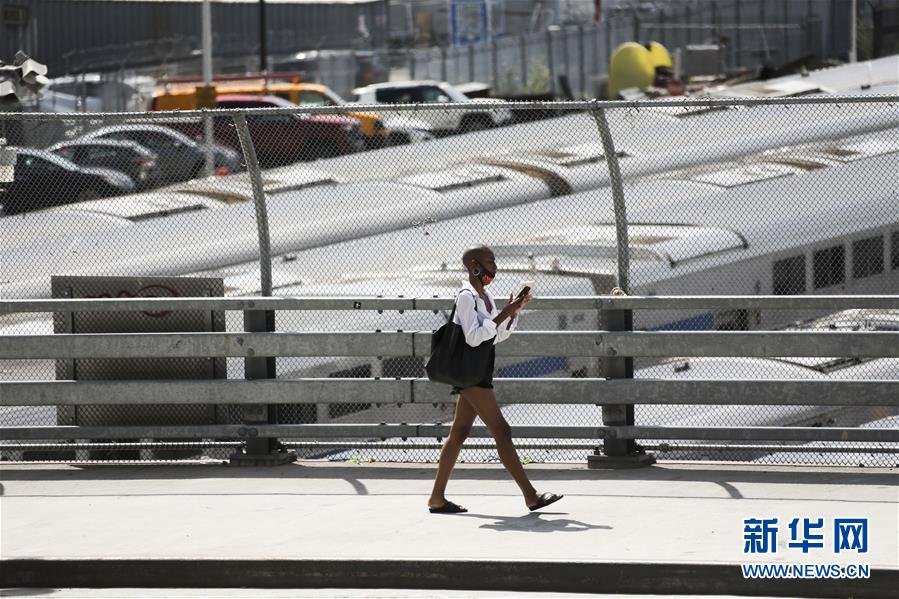 7月14日,戴口罩的女子走在美国纽约街头。 美国约翰斯·霍普金斯大学:截至北京时间15日6时34分,全球新冠确诊病例达13258016例,死亡病例为576752例。美国是全球疫情最严重的国家,确诊病例达3416222例,死亡病例为136319例。 新华社记者 王迎 摄